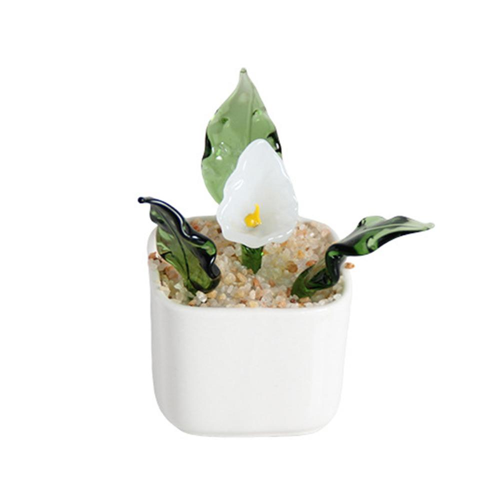 Статуэтка из каллы, стеклянные растения в горшках, миниатюрные мини-статуэтки из цветов ручной работы, синие настольные украшения, украшения из глазури