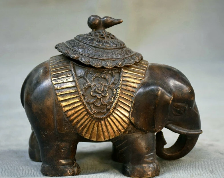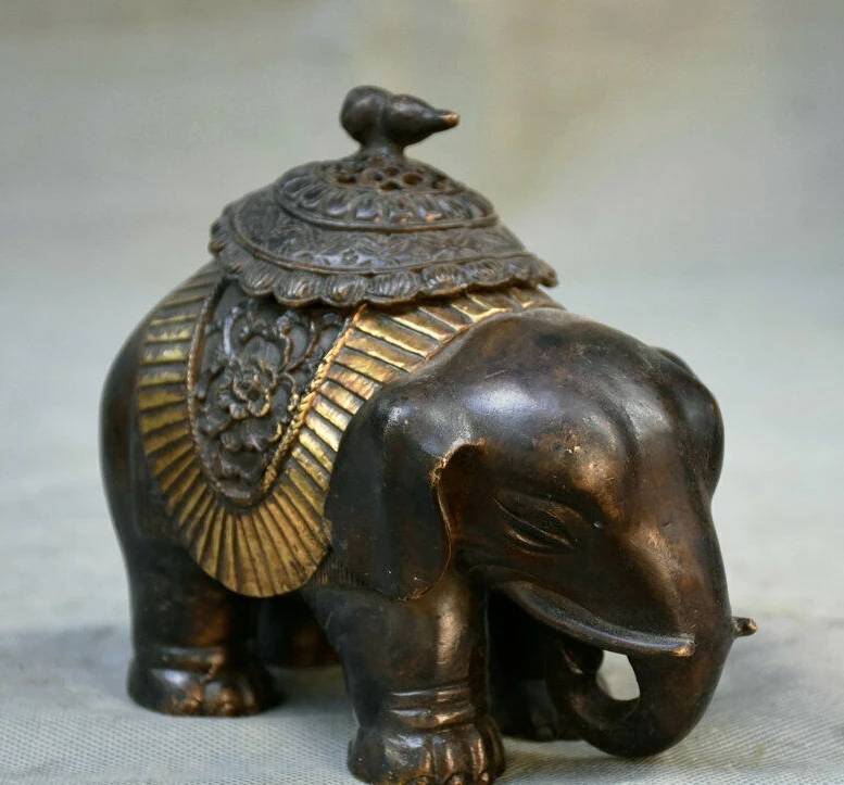 Статуя Слона старой китайской Красной Медной позолоченной династии курильница