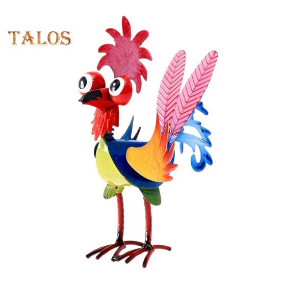 Статуя железного петуха, расписанная вручную садовая фигурка петуха, красочное украшение для двора, патио, газона красный