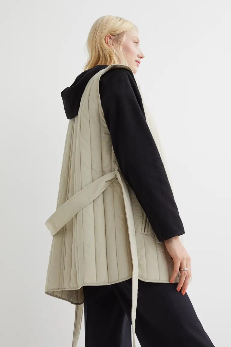 Стеганый жилет с завязывающимся поясом H&M, светло-бежевый