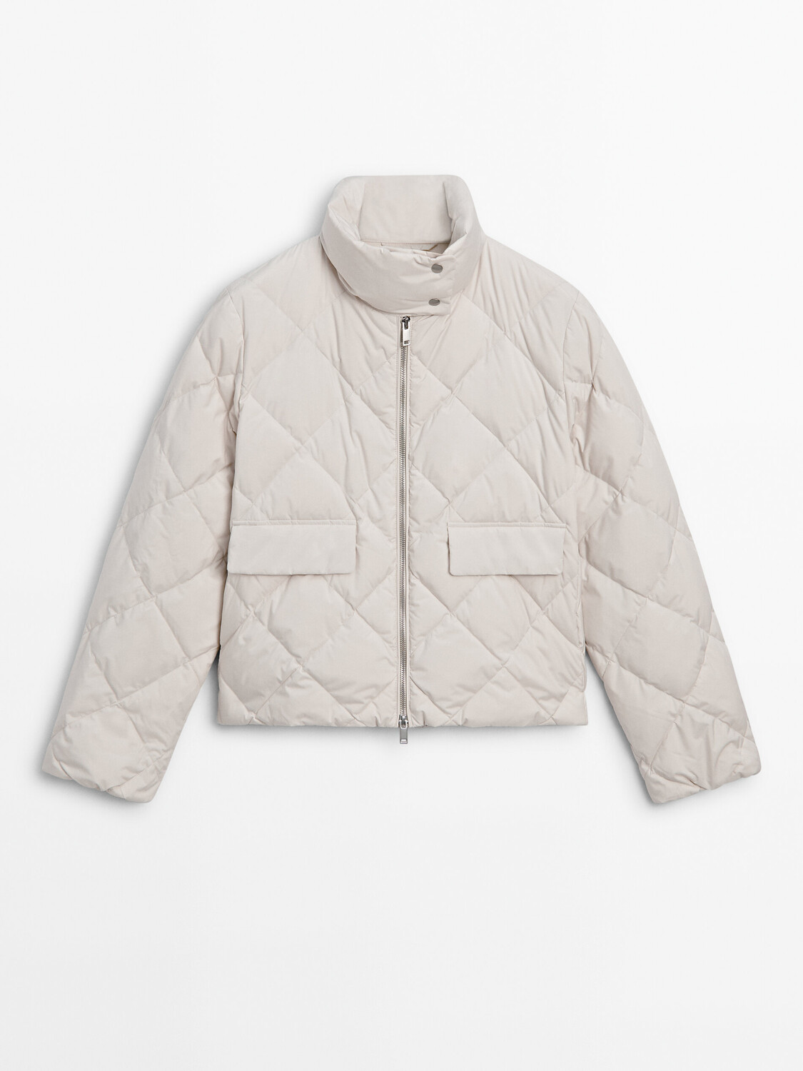 Бренд: Massimo DuttiЦвет: бежевыйСтеганая куртка на пуховой внутренней подкладке. Высокий воротник на пуговицах. Двойная застежка-молния. Два кармана с клапанами.
