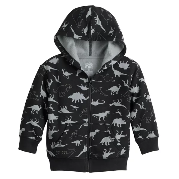 Детская флисовая толстовка с принтом на молнии для мальчиков Jumping Beans, цвет black grey dinos