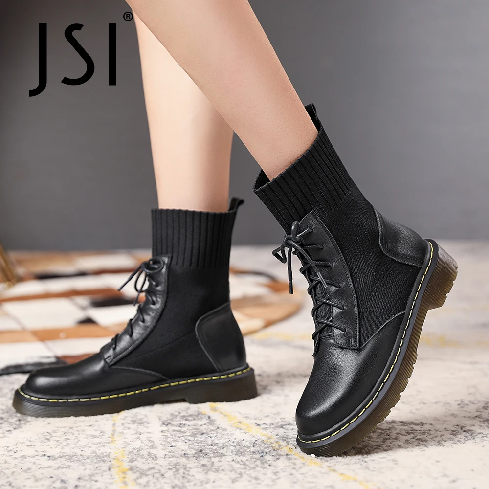 JSI/панк стиль; Ботильоны Martin; Женские Белые Прошитые носки из натуральной кожи со шнуровкой; Эластичные короткие ботинки; JO756