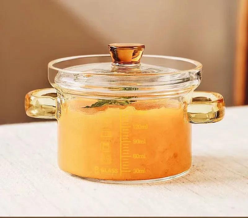 Стеклянная кастрюля для тушения, прозрачная кастрюля для супа, кастрюля для лапши, термостойкая, для микроволновки, для разогрева в огне, кастрюля с двумя ручками, кухонные принадлежности для приготовления пищи