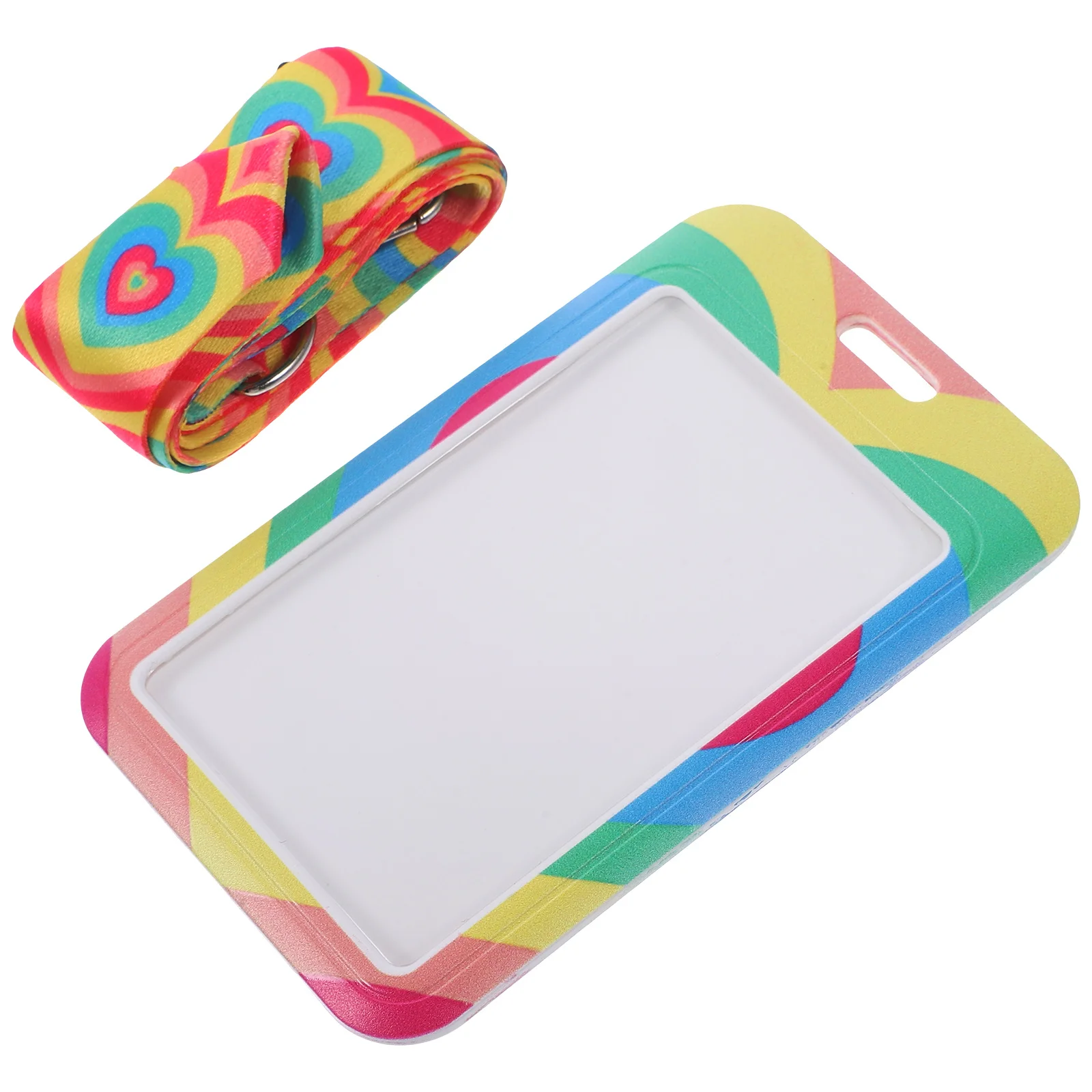 1Set Badge Holder Lanyard Card Sleeve Polyester Plastic Multifunctional Id Card Protector for Students Teachers