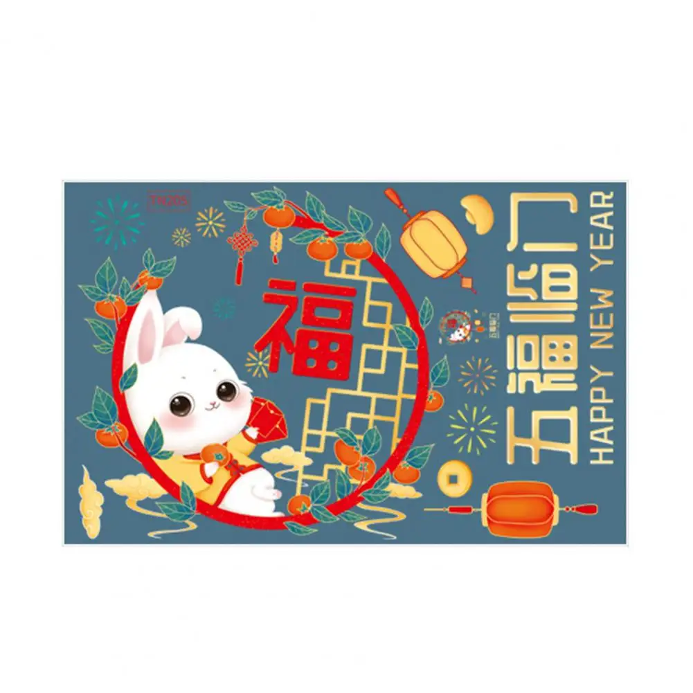 Стеклянная наклейка долговечная с новым годом без следов 2023 Китайский кролик Новогодняя стеклянная наклейка для фестиваля