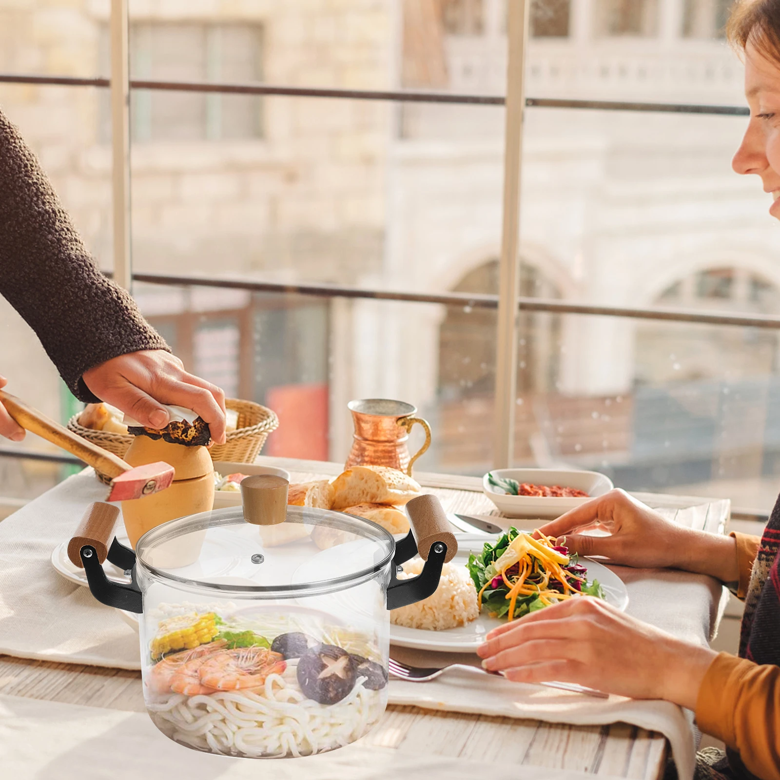 Стеклянная прозрачная кастрюля с двойной ручкой, большая кастрюля для супа, безопасная кухонная стеклянная кастрюля, стеклянная посуда, кастрюли для приготовления пищи