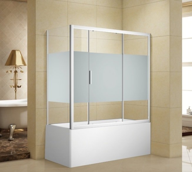 материал шторки закаленное стекло, стационарные двери, 167х150 см, матовый/прозрачный
