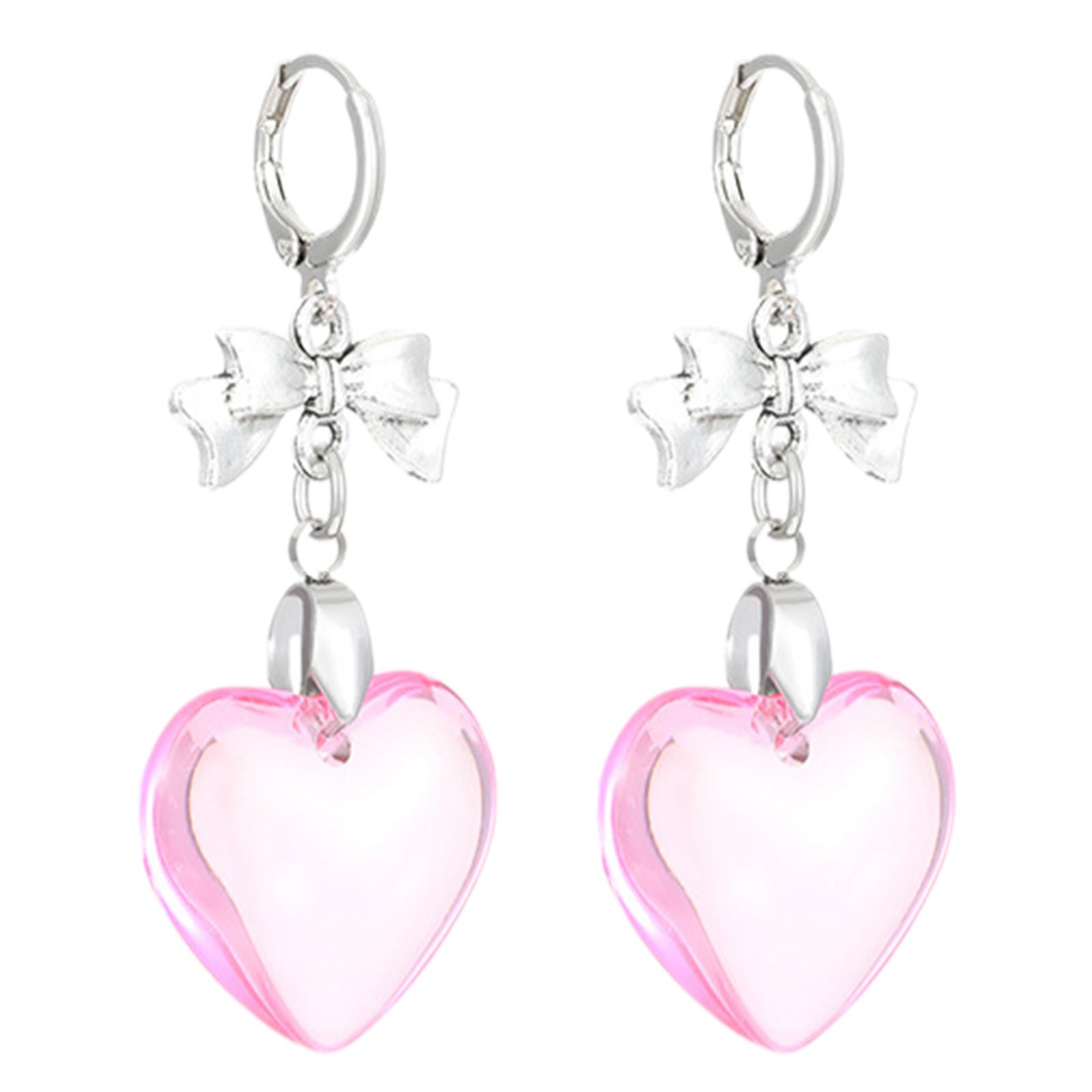 Стеклянные висячие серьги с сердечками, милые крутые серьги с бантом для женщин и девочек, серьги-кольца, стильные вечерние ювелирные изделия, подарок