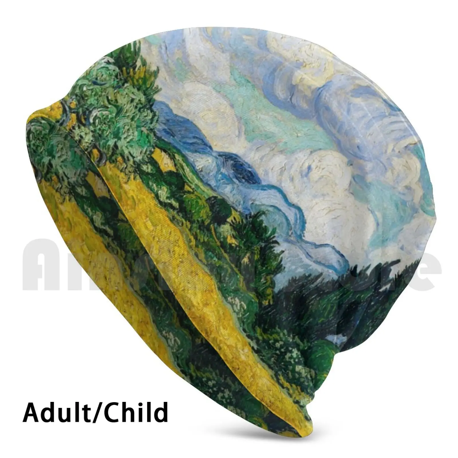 Пшеничное поле с ципрессами (1889) от Винсента Ван Гога, шапочка с углублением, печать «сделай сам», подушка Ван Гога, поля с облаками