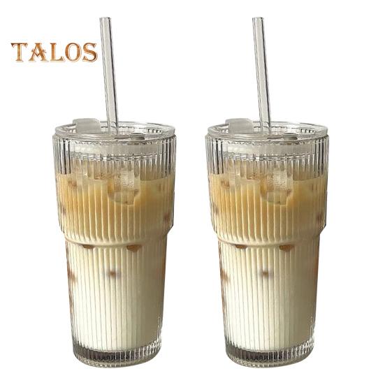 Стеклянный стакан Stripe с крышкой и трубочкой 600 мл, многоразовый стеклянный стакан для кофе со льдом, сока, молока, чая, кофе со льдом, можно мыть в посудомоечной машине, прозрачные стаканы для питья 600ML 2 Sets