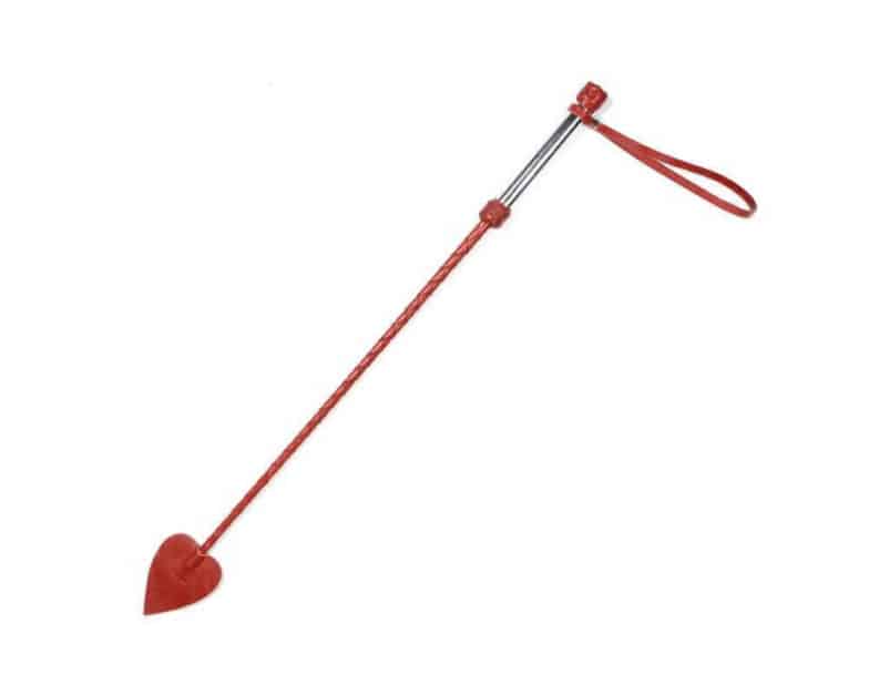 Изящное изделие ручной работы, уже вид которого способен возбуждать воображение и вызывать желание поскорее воспользоваться данным предметом. Гибкий стержень стека оплетён лентами натуральной кожи красного цвета, что придаёт ему благородный роскошный вид. На кончике хлыста располагается шлепок в виде сердца из натуральной кожи. Для удобного использования, имеется хромированная рукоять, украшенная, с обоих концов, турецкими узлами. Также, на рукояти находиться петля, в виде тонкого кожаного ремешка, который, во-первых, позволяет хранить изделие в подвешенном состоянии, во-вторых, обеспечивает удобство использования девайса во время сессий BDSM. Общая длина изделия составляет 70 см