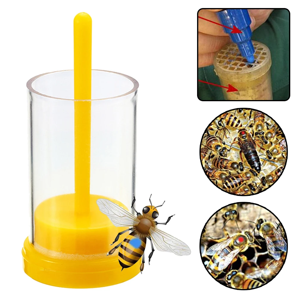 Queen Bee Marker Bottle Protect Safety Bee Catcher Yellow Plastic Farm Marker Bottle Plunger Plush Garden Beekeeper Accessories