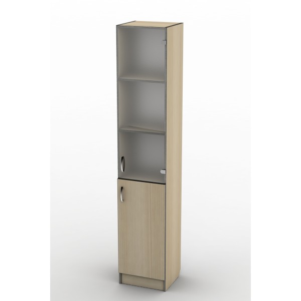 Габаритные размеры: Ширина - 350 мм. Глубина - 350 мм. Высота - 2050 мм. Шкаф стеллаж ШС-50У Тиса Мебель часто приобретают как дополнительный модуль к стеллажам большего формата. Закрытый низ отлично сочетается с прозрачным стеклом, закрывающим верхний открытый отдел. Комфортно использовать тумбу с распашными дверками ЛДСП и верх, в котором просматривается документация. Ведь часто используемые документы удобнее доставать, когда они расположены на полках с хорошим обзором. Компактная востребованная модель. Характеристики изделия Стандартное расположение Зеркальное расположение Материал ЛДСП 16 мм KRONO Украина