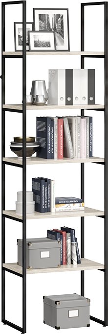 напольная установка, открытая, 5 полок, материал: ЛДСП/металл, стиль: лофт, цвет: белый/дерево светлое/черный, длина 60 см, высота 214 см, глубина 37.2 см