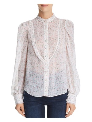 DIVINE HERITAGE Женский белый топ на пуговицах с длинным рукавом и цветочным принтом. Размер