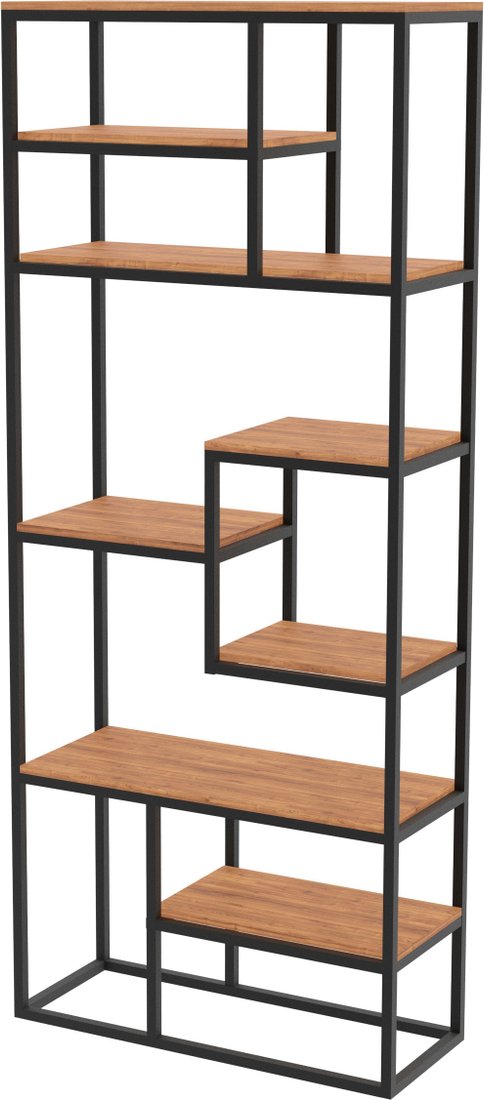 напольная установка, открытая, 7 полок, материал: ЛДСП/металл, стиль: лофт, цвет: коричневый, длина 80 см, высота 200 см, глубина 30 см