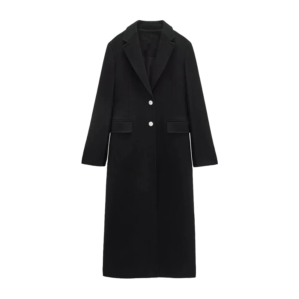 Женское длинное шерстяное пальто Za, винтажное черное пальто с длинным рукавом, шикарные топы, осень 2021