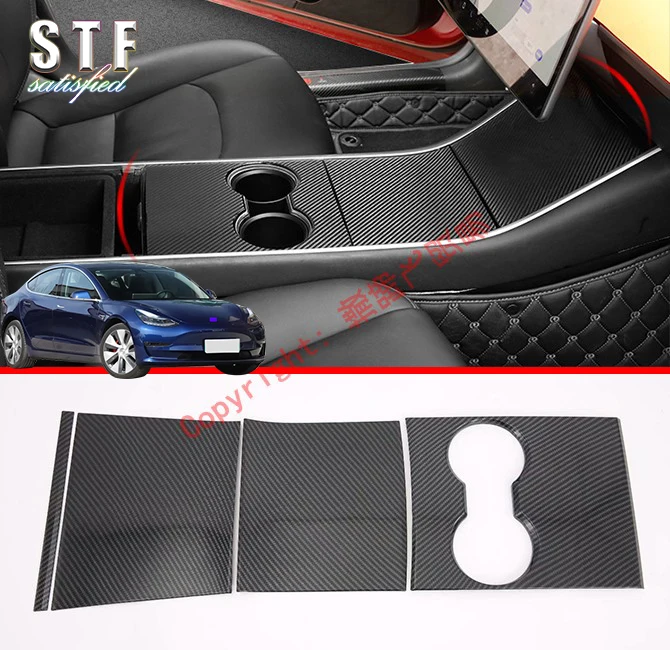 Стильная внутренняя Обложка подстаканника из углеродного волокна, отделка для Tesla Model 3 2017 2018 2019, автомобильные аксессуары, наклейки