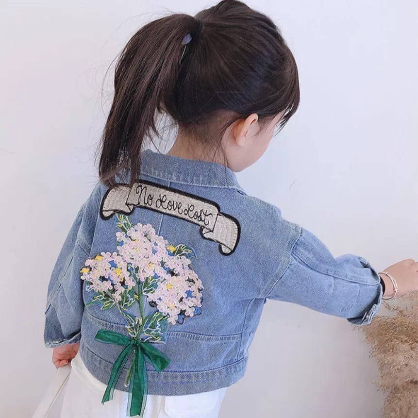 Стильная детская джинсовка на девочку, джинсовая куртка с вышивкой, Голубой