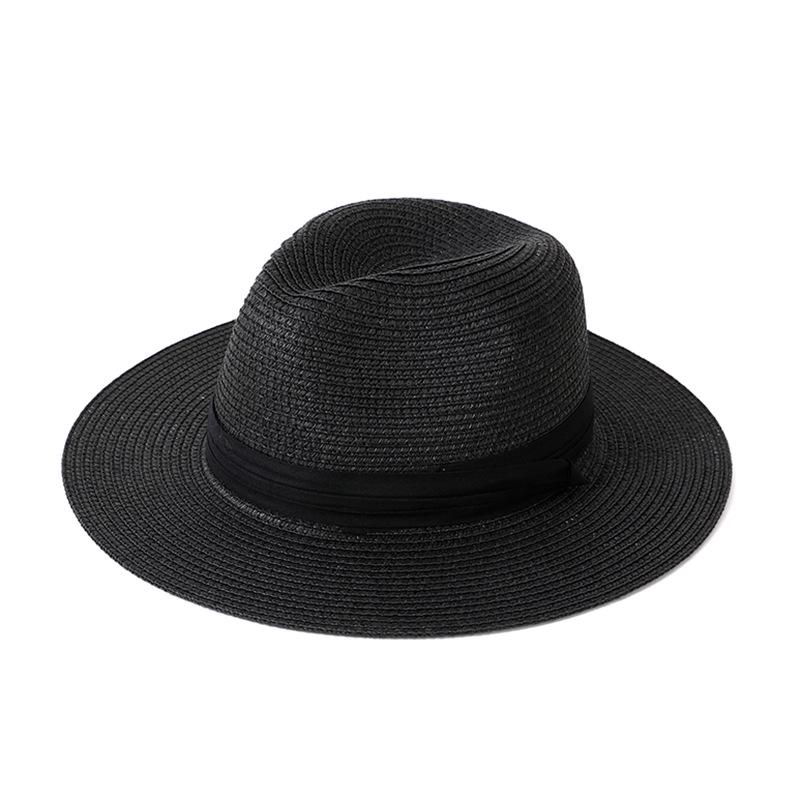 Стильная летняя панама из соломы - Защита от солнца для улицы, джазовая и пляжная шляпа Small buckle with adjustable strap чёрный