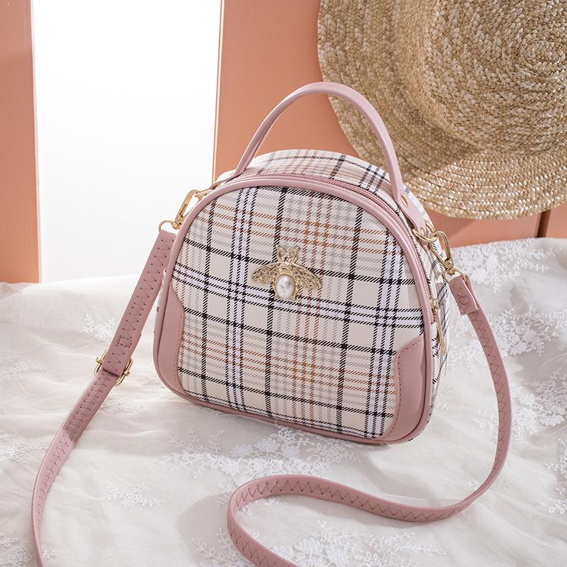 Стильная маленькая свежая персонализированная клетчатая женская сумка через плечо кроссбоди тренд украшение пчела розовый