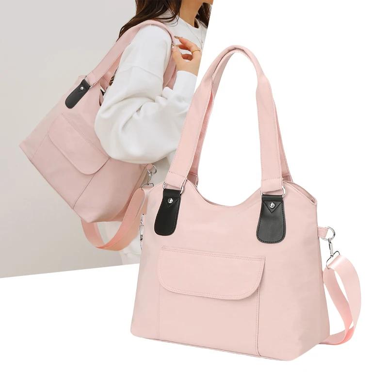 Стильная нейлоновая простая сумка через плечо, повседневная универсальная женская сумка через плечо, сумка-тоут для поездок на работу розовый