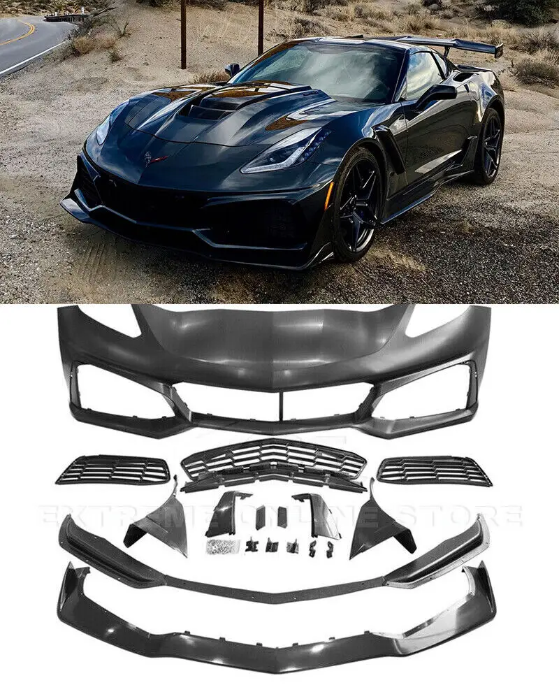 Стильная передняя решетка радиатора ZR1, задние губы, задний бампер с рисунком для Chevrolet Corvette C7 ZR1 2014-2019