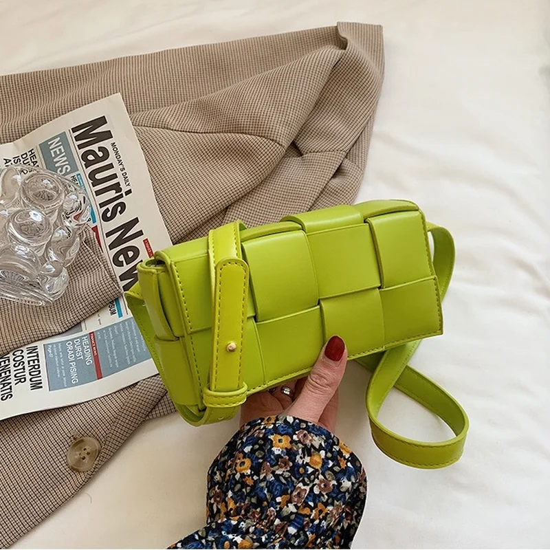 Стильные плетеные сумки из искусственной кожи в клетку через плечо для женщин, тканый дизайн, поясная сумка, вязаная женская модная сумочка, тренд 2022, тренд
