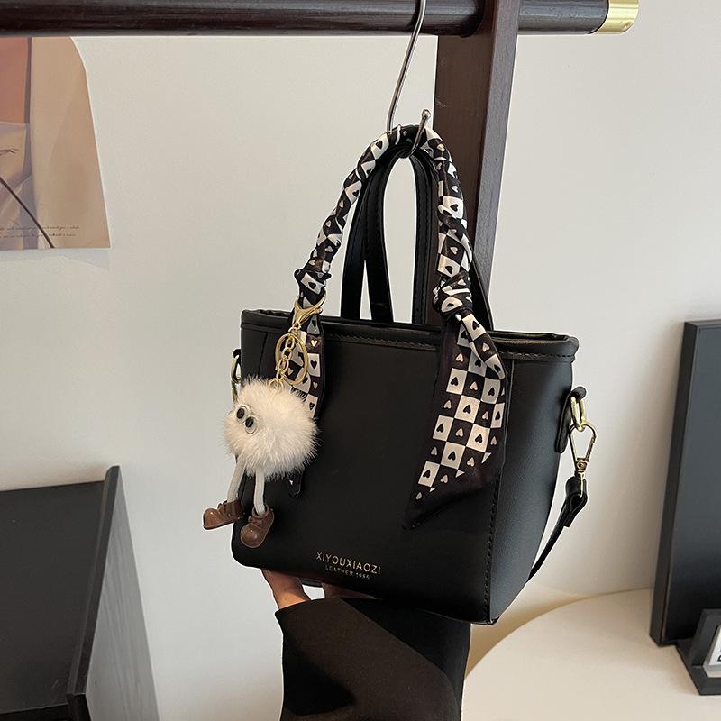 Стильная и простая портативная сумка-ведро, маленькая сумка, женская, 2025, новая, на плечо, сумка-мессенджер, однотонная, универсальная сумка на плечо One size чёрный