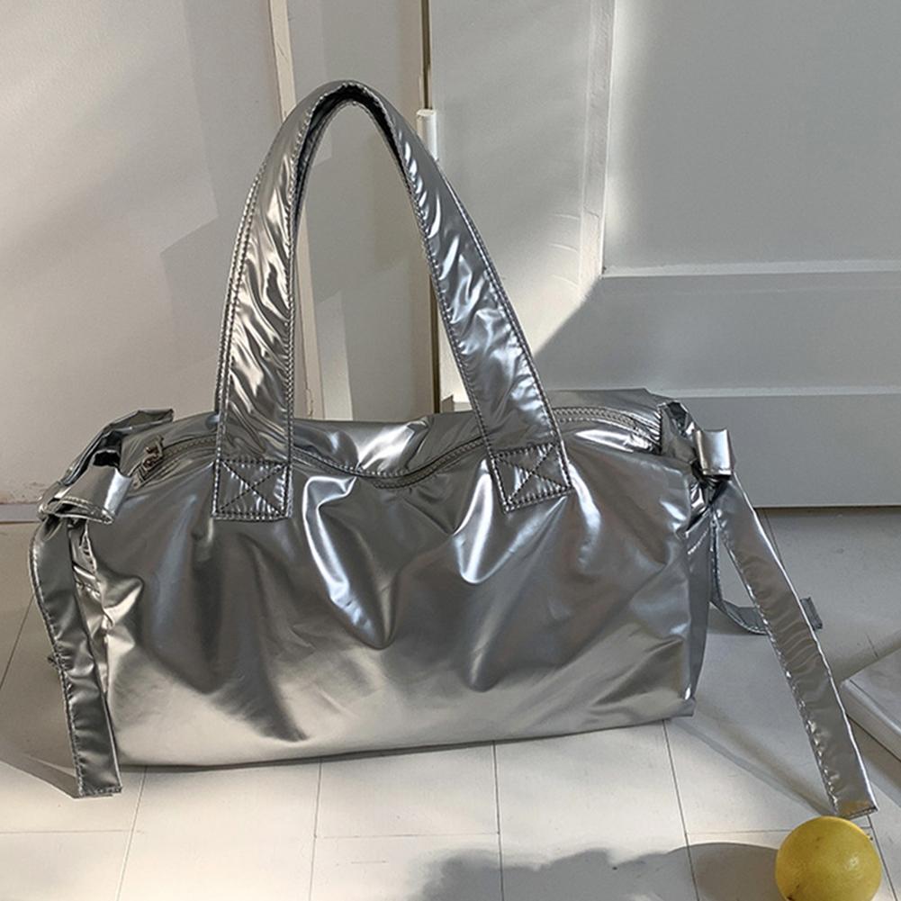 Стильная сумка на плечо с милым бантом, нейлоновая модная сумка для подмышек, большая вместительная повседневная сумка на плечо, однотонная для женщин и девочек серебряный