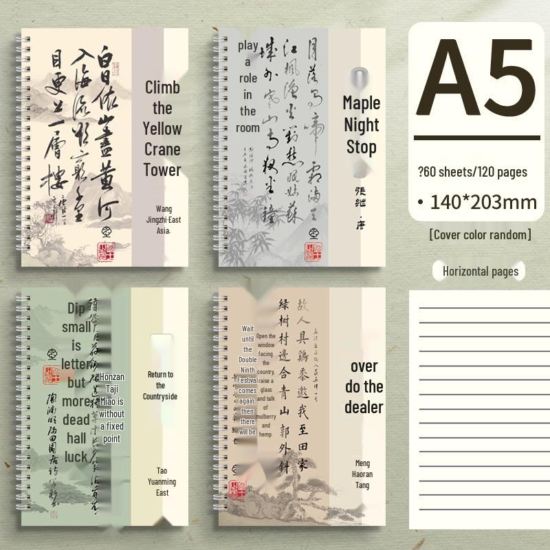 Стильная тетрадь на спирали в национальном стиле - Доступна в больших форматах B5, A5 и милом маленьком формате для студентов