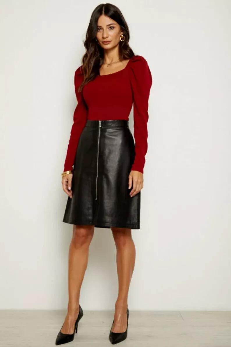 Стильная черная официальная женская юбка ручной работы из натуральной мягкой кожи ягненка для вечеринок 3XL чёрный