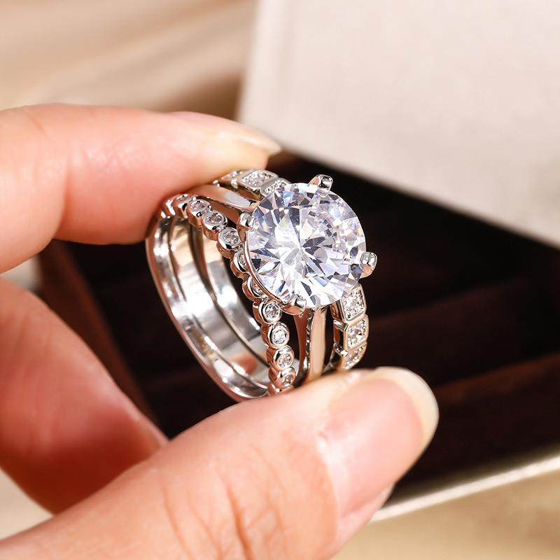 Hainon Fashion Female White Bridal Wedding Ring Silver Color Filled Jewelry Promise CZ Stone Engagement Rings For Women