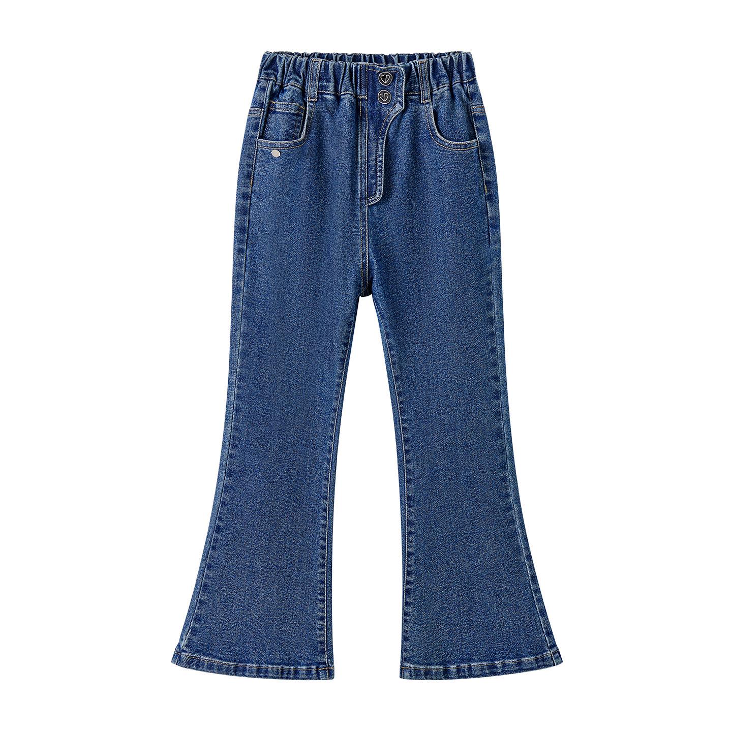 Стильные осенние расклешенные джинсы для девочек: Тонкие, Удобные, Универсальные, Выстиранные Длинные Брюки для Детей 130 cm синий