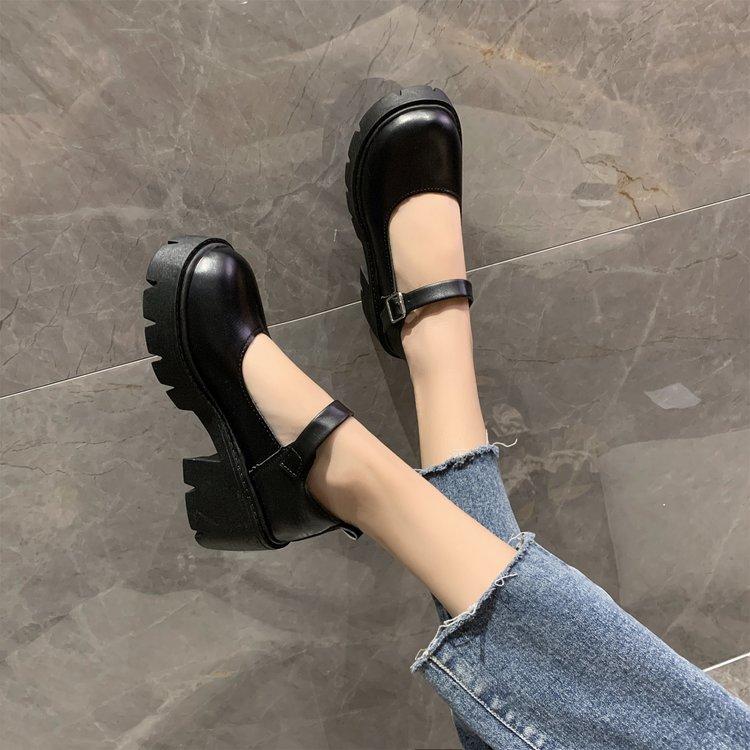 Стильные туфли на толстой подошве, весна-лето, маленькая кожаная обувь с пряжкой в британском стиле, повседневная женская обувь 37 прохладный черный