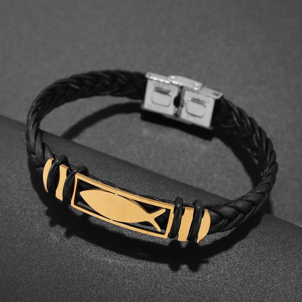 Стильный браслет из нержавеющей стали с узором «большая рыба» и пряжкой для пары, кожаный браслет в стиле панк, хип-хоп, праздничный подарок, аксессуары для вечеринок чёрный