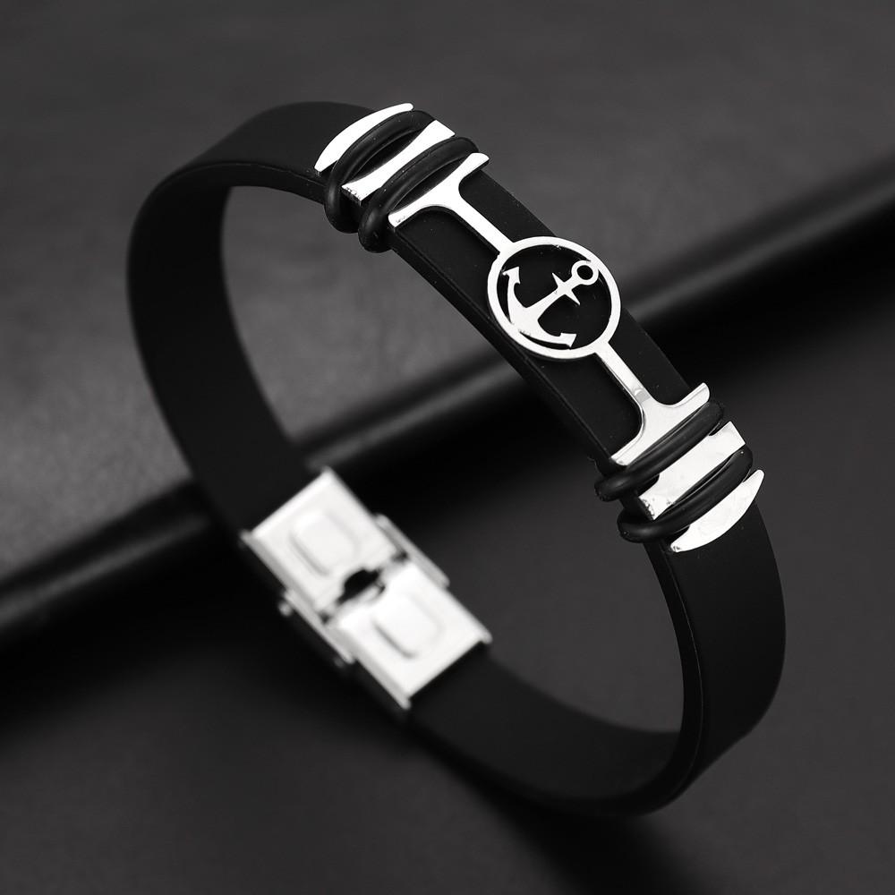 Стильный браслет с рисунком пиратского корабля и якоря, пара, панк-спортивный силиконовый браслет, праздничный подарок, аксессуары для вечеринок чёрный