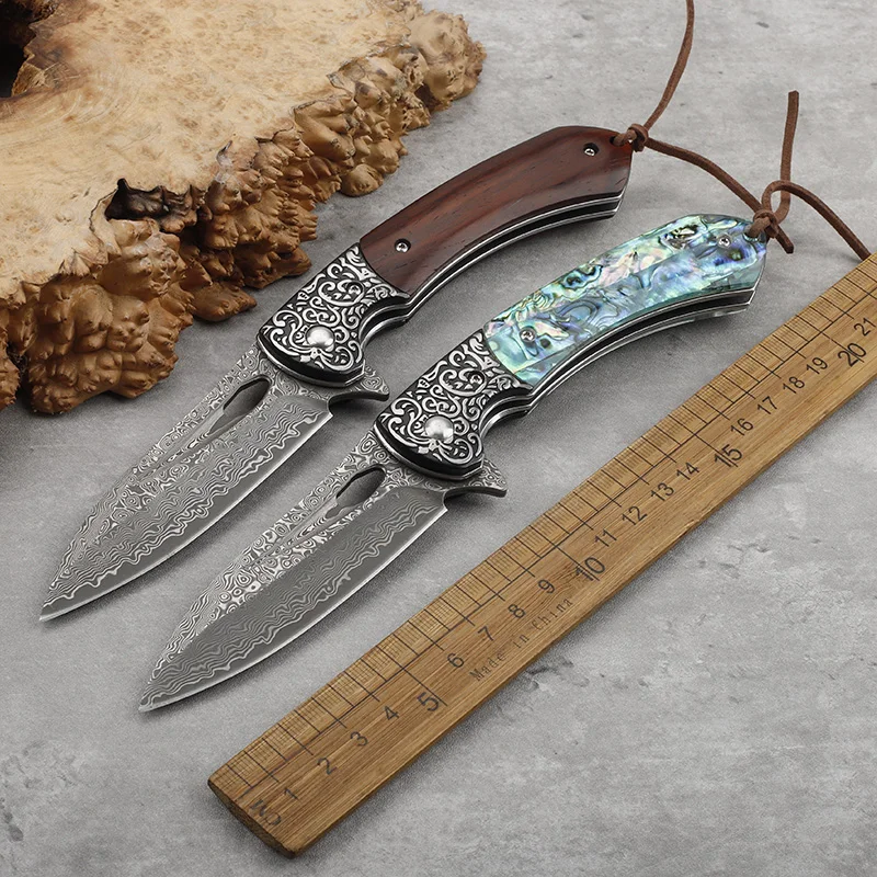 VG10 Core Damascus Steel Sandalwood/Color Shell Handle Folding Knife Outdoor Survival Camping Fishing Portable Tool Knife