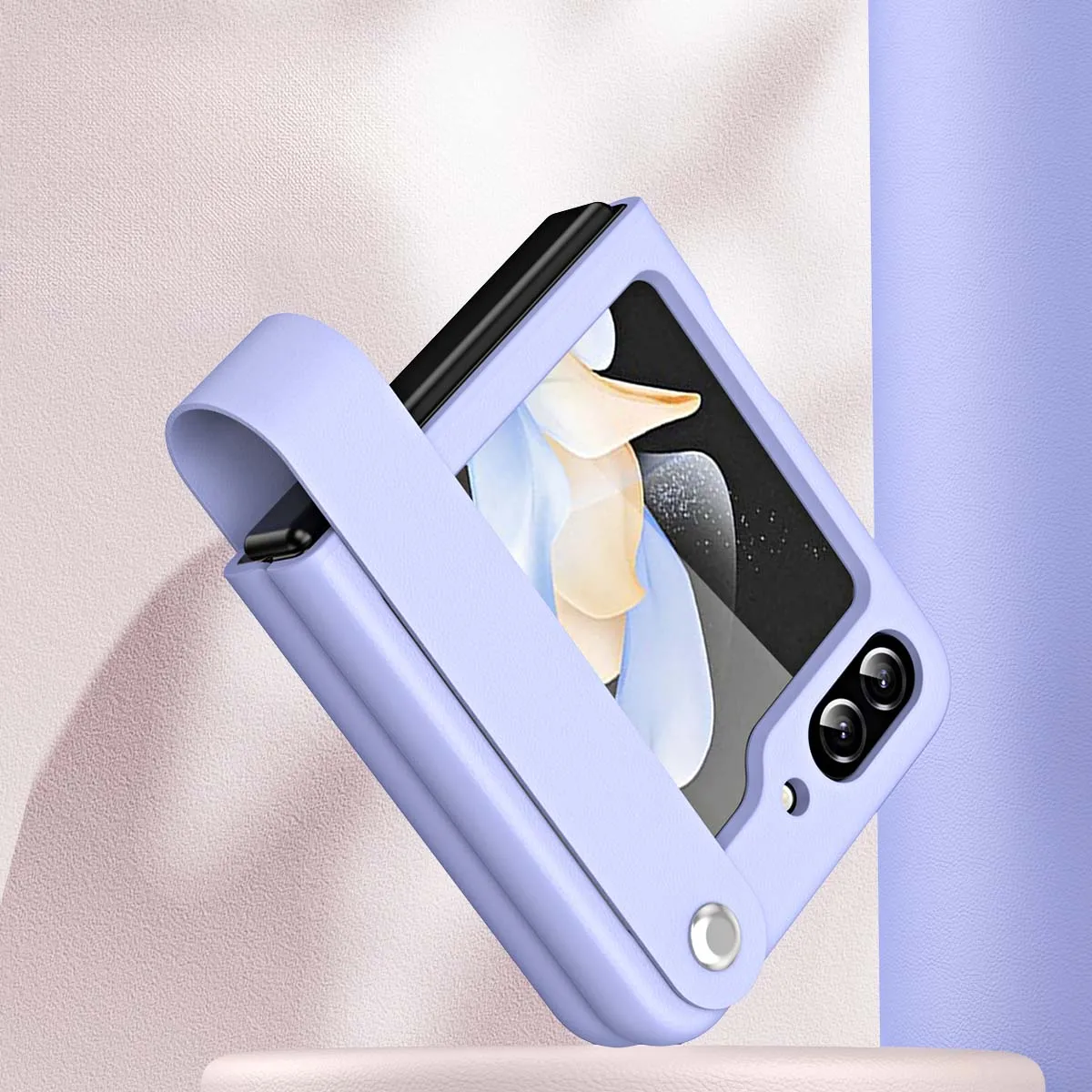 Стильный однотонный портативный чехол для телефона с ремешком на руку для Samsung Galaxy Z Flip 5, складной кожаный чехол с защитой от ударов