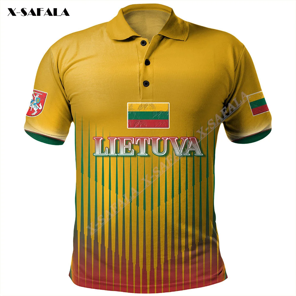 Lithuania Lietuva Flag Color Sports Style 3D Print Men Polo Shirt Collar Short Sleeve Street Wear Casual Tee Tops Anti-shrink