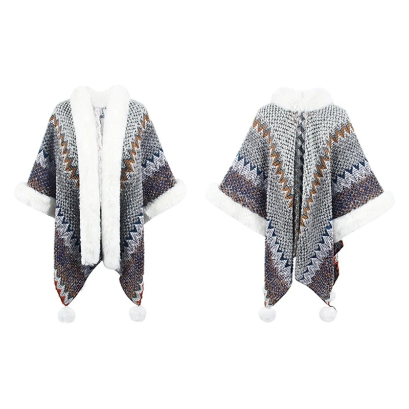 Стильный и удобный женский вязаный свитер-кардиган с накидкой-пончо и открытым передом