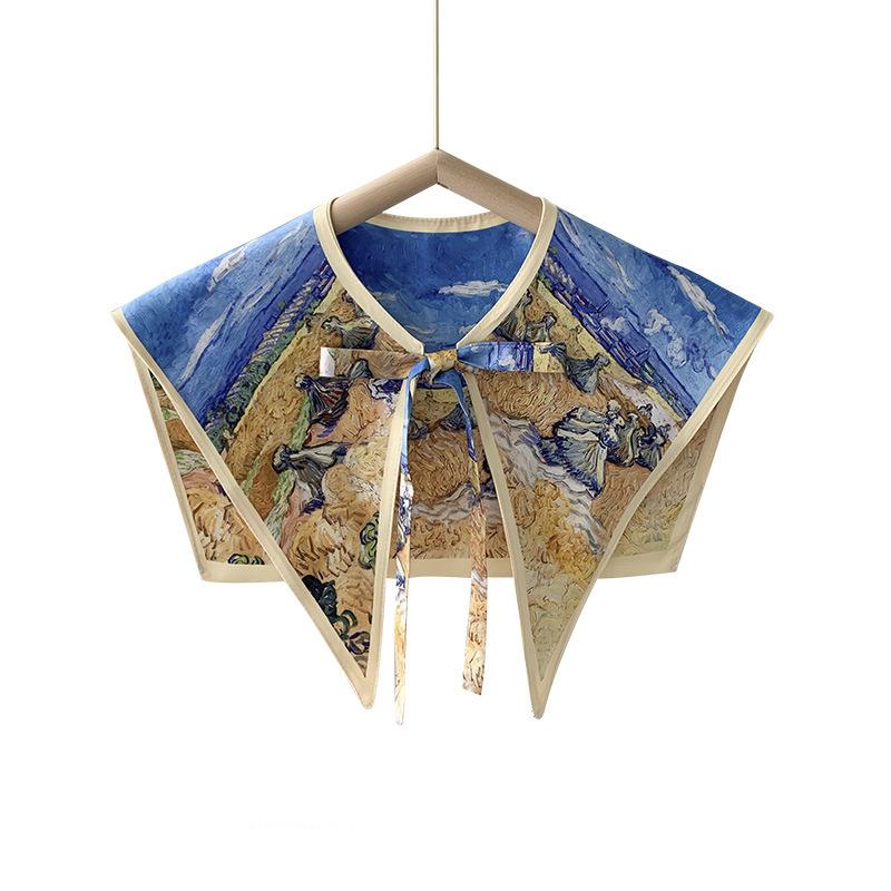Стиль масляной живописи, универсальный принт, маленький шелковый шарф, тонкая шаль, летнее наружное украшение, женский поддельный воротник, солнцезащитная шаль в иностранном стиле 42cm