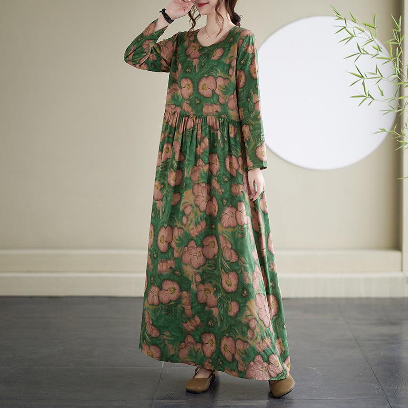 Стиль ранней осени, праздничный стиль, дорожный, круглый вырез, ретро, длинное платье, женское, свободное, с принтом мяса, с длинными рукавами, хлопковое и льняное платье 2XL