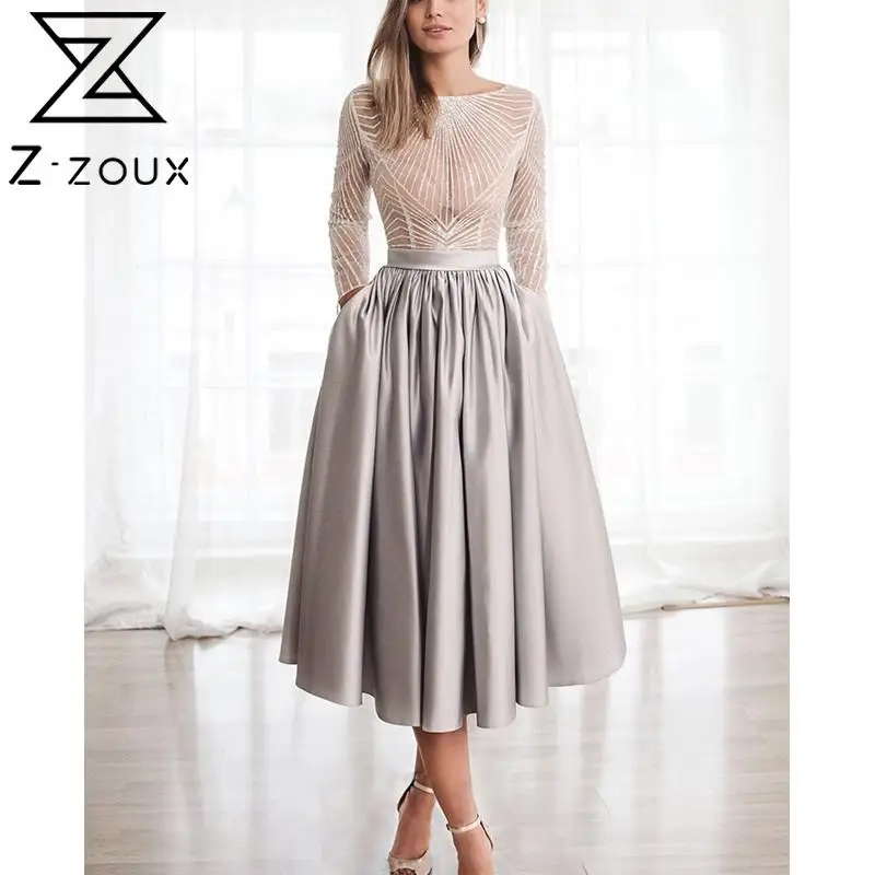 Z-ZOUX Women Dress Patchwork Perspective Hollow Out High Waist Large Hem Sexy Long Party Dresses Autumn Spring 2021 Fashion New