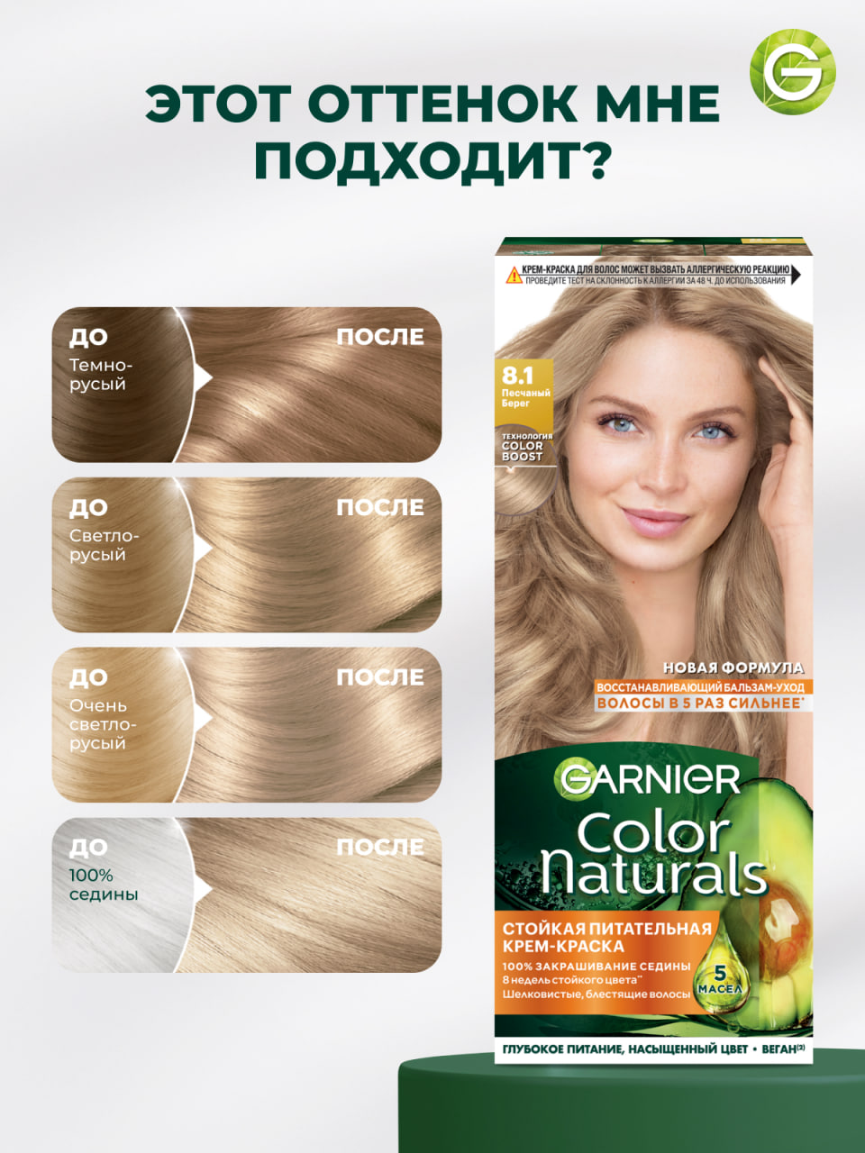 Стойкая питательная крем-краска для волос Garnier Color Naturals оттенок 8.1 Песчаный берег 110 мл