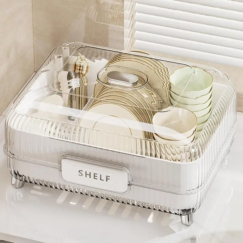 Стойка для посуды с крышкой, съемная сушилка большой емкости, бытовая кухонная полка для посуды, прозрачный стеллаж для столовых приборов, для стойки, для дома