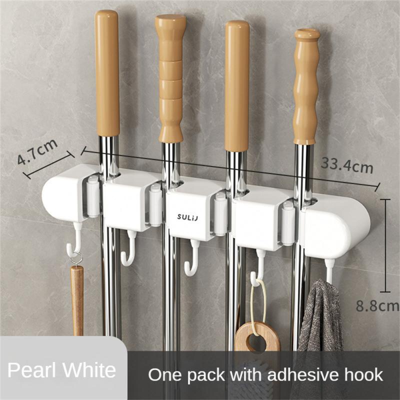 Стойка для хранения швабры Многофункциональная прочная и устойчивая серо-белая стойка для швабры с 4 позициями, держатель для швабры с высокой несущей способностью