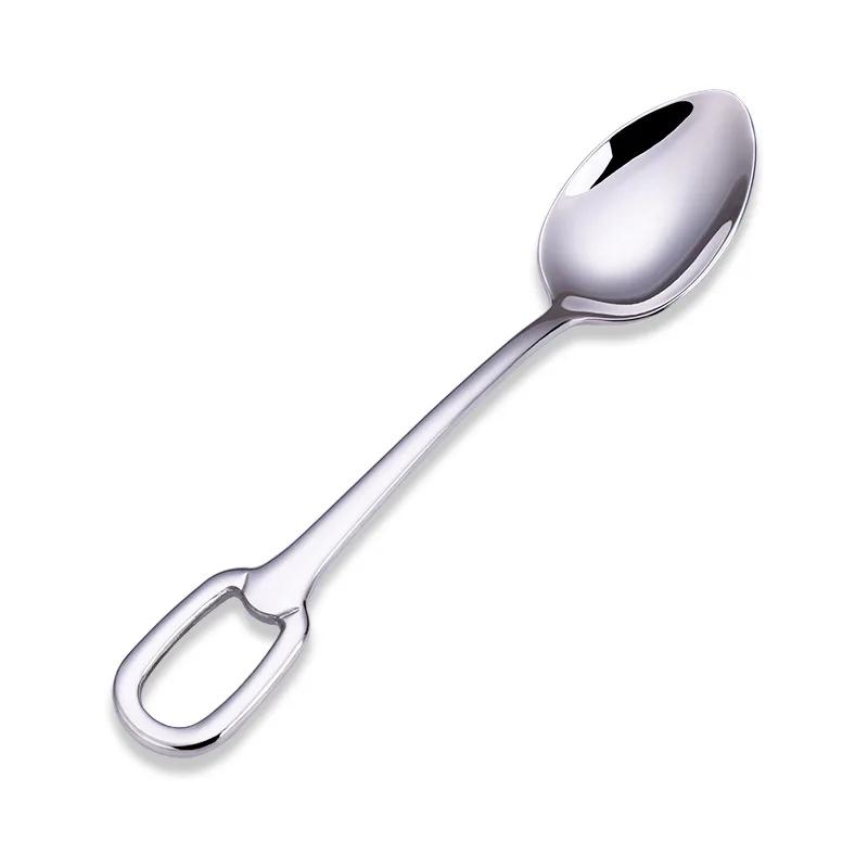 Столовые приборы из нержавеющей стали 304 с отверстием для подвешивания, стальная струна, чай, кофе, маленькие ложки серебряный