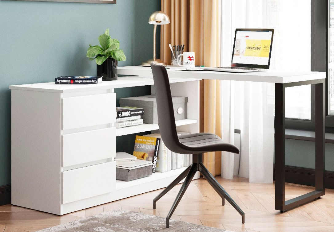 стол для работы, угловая форма, 1125x1200 мм, высота 750 мм, материал: ЛДСП (столешница), окрашенная сталь (опоры)